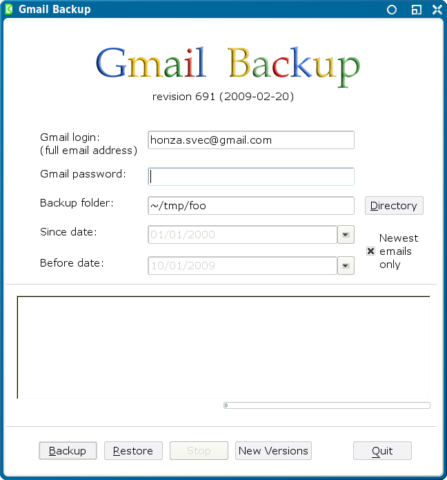 Using the program is simple. After filling in the email address to be processed, it selects where or from where it should be backed up or restored. Individual messages are saved to EML files.