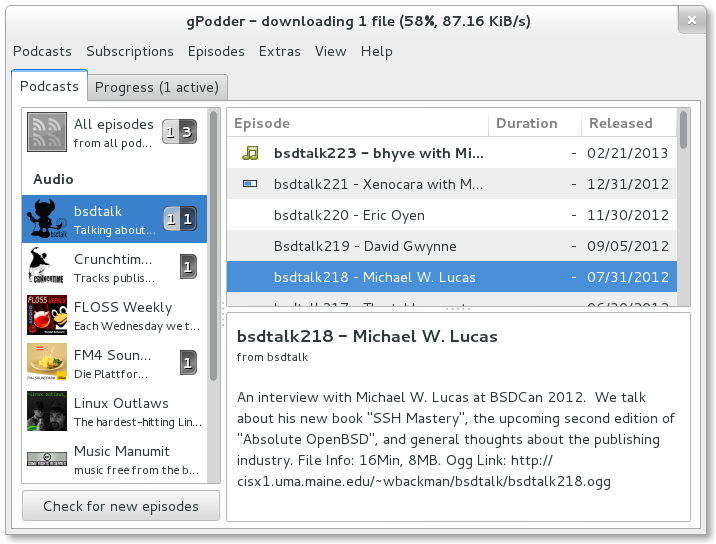 gPodder downloads and hosts free audio and video content ("podcasts") for you. Listen directly on your computer or mobile devices.