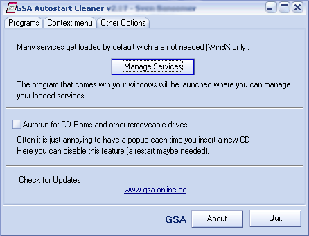 GSA Autostart Cleaner is a special application that can speed up the start of your PC. It scans all the places on your system where autostart applications are stored (registries, ini-files, bat-files, etc.) and then it's up to you whether you decide to delete them or keep them. As a result, this will make your computer boot faster and your system more stable.