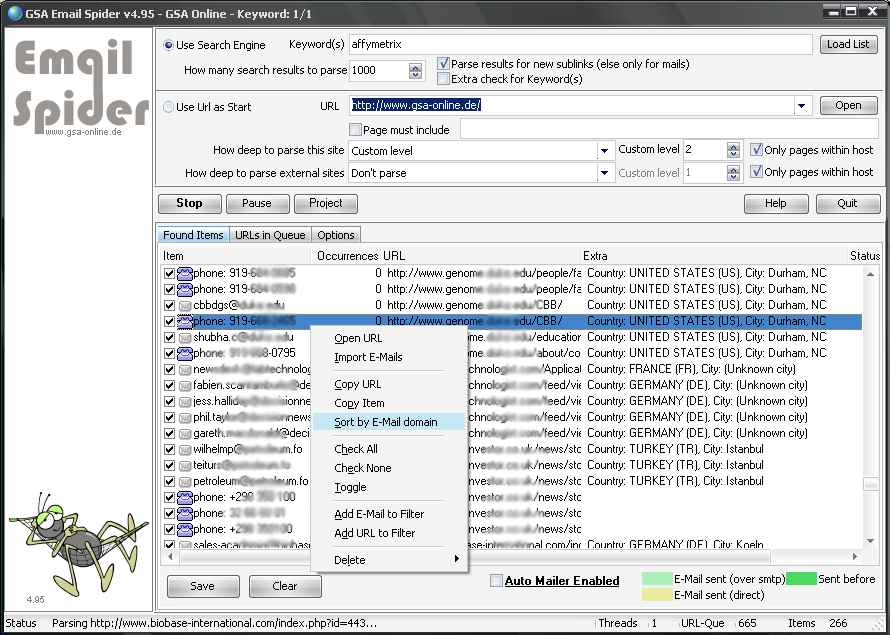 GSA Email Spider is an application that allows you to retrieve all emails, phone and fax numbers from websites around the world using keywords. The websites will be analyzed using this application, thanks to the keywords. It is also possible to send emails to your new customers. The program is great especially for marketing. It provides benefits for your business and allows you to establish a new customer base with good advertising!
