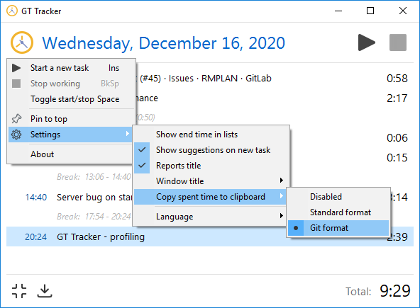 Simple app for tracking time worked. You can record and organize your tasks in any tool (e.g. GitLab, Redmine, etc.) - GT Tracker will help you keep track of the time spent on them.