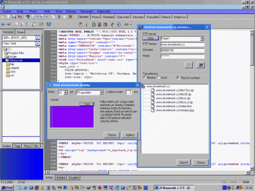 It is a Czech free html editor supporting both code and wysiwyg editing. The main goal of the program is simplicity of use and the highest possible functional comfort.