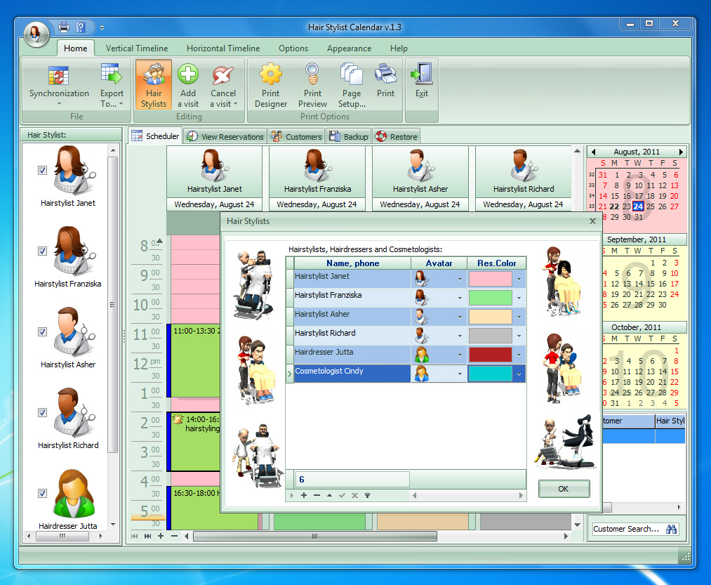 Hair Stylist Calendar is a software tool designed specifically for hairdressers, hair stylists, beauticians, manicure and esthetician shops, tanning salons, etc. With this program, planning and management is a pleasure. The program allows the user to switch between profiles to view the schedule for employees, it is also possible to view multiple profiles simultaneously or open the schedules of several specialists at the same time.