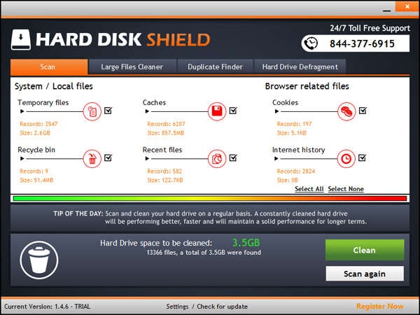 Hard Disk Shield is an advanced hard drive cleaning tool. It provides a detailed check and a safe way of cleaning - it frees only the necessary space on the hard disk. The tool also scans and maps internet sections, after scanning a table of files that are safe and which should be deleted is compiled. It safely searches for duplicate files. Disk defragmentation is a matter of course.