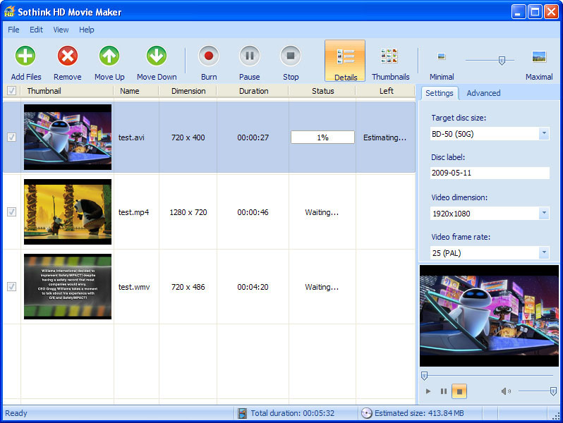 With HD Movie Maker, users can easily create HD Blu-ray movies from the Internet, HD camera, HDTV or DVD. The converted video can also be burned at high speed.