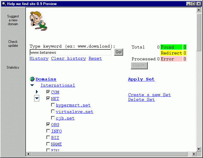 This tool helps you find new websites around the world. Simply type in a word that describes the topic (probably with www) and the program will offer available options. If a site with that name exists, it will be highlighted in green, otherwise it will be highlighted in red or yellow.