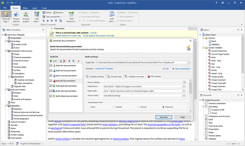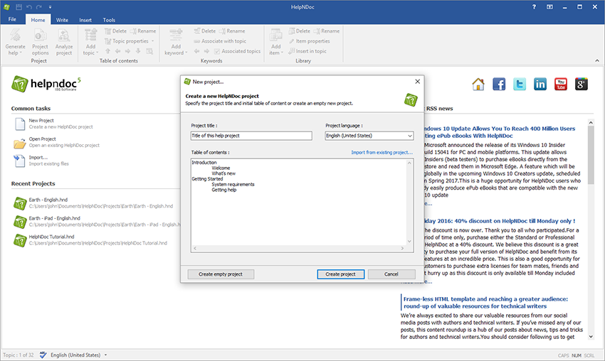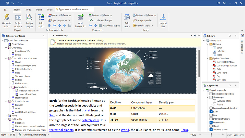 HelpNDoc is a modern help authoring tool with an intuitive user interface. Write or import your content and create more than 8 documentation formats including help files, web pages, user guides, documents, Markdown, eBooks...