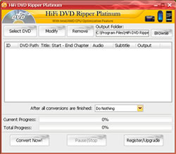HiFi DVD Ripper Platinum is a fast and powerful ripping software that makes it easy to convert DVDs to almost all popular video and audio formats. You can rip movies on DVD or just parts of it to e.g. AVI, MPEG4, VCD, SVCD, MPEG1, MPEG2, 3GP, 3GPP2, MP2, MP3, AC3 and to formats for iPod, iPhone , Apple TV, PSP, PS3, Sony A820, mobile phone and other devices. HiFi DVD Ripper provides many useful features to help you easily get quality video in the shortest possible time.
