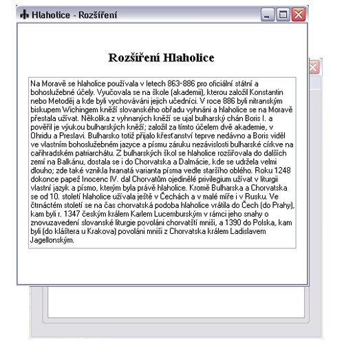 The software contains information about the history, development and use of Glagolitic. You learn how to write and read the Glagolitic alphabet and become familiar with its characters.