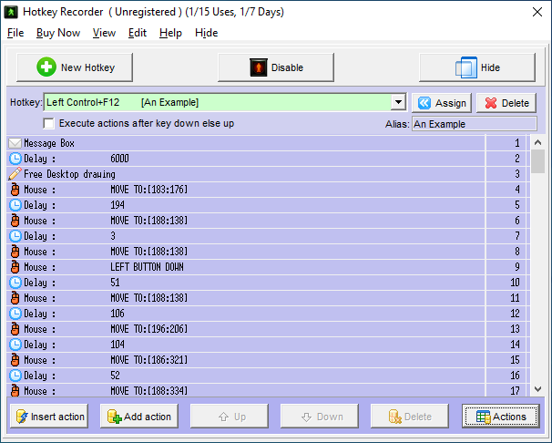 Hotkey Recorder can record your keyboard and mouse events for a specific program, save those events, and then execute them automatically whenever needed. Of course, you can edit the macros you create, set a certain number of loops, or assign a keyboard shortcut to them and execute the macro whenever you want.