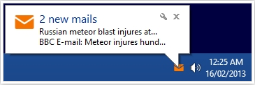 Howard is essentially a replacement for Windows Live Messenger email notifications. A tooltip (popup in the system tray) and sound will notify you of a new email. The tooltip shows the sender and subject of the email. Just click on the label or icon to open your mailbox in the browser or Windows Mail.