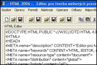 This application is designed for simplified editing and custom web page creation. The application includes a large number of preset tags, so you don't have to laboriously write them out. It also includes basic html page structures (including frames). The program is of course further developed according to the needs of you, the user.