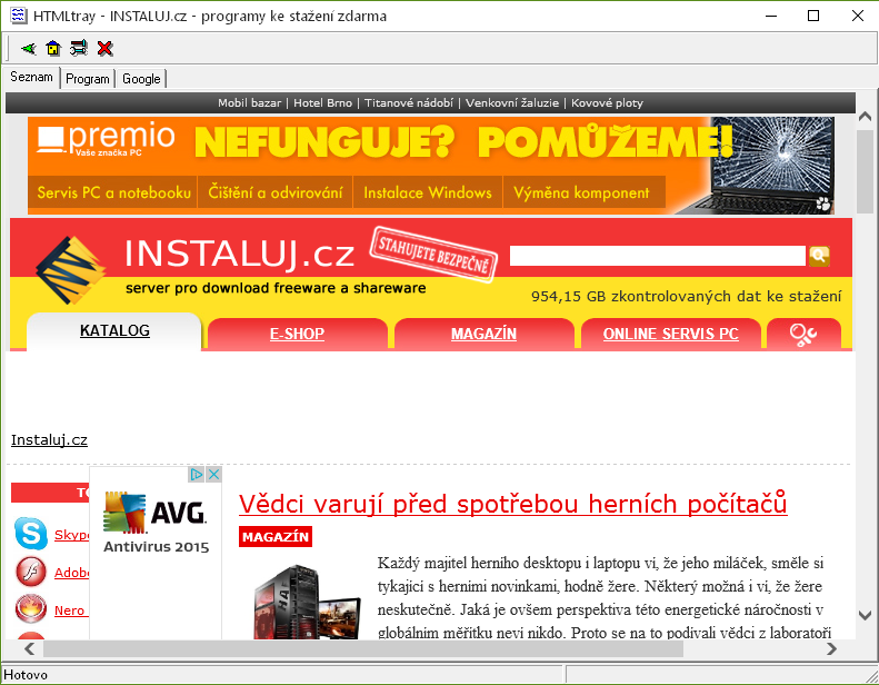 HTMLtray is a Web browser with support for bookmarks, but most importantly with the ability to launch via keyboard shortcut for each bookmark. Want to quickly view the pages of Install, TV program or Google? Then press your defined keyboard shortcut and the program will open on the selected tab. The downside is that the browser core is built on Internet Explorer. There really was no other option at the time.