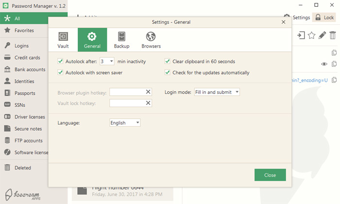Icecream Password Manager helps you protect and manage your logins and passwords, credit cards, identities, bank accounts, passports and more. Remember only one master password to access all your sensitive data.