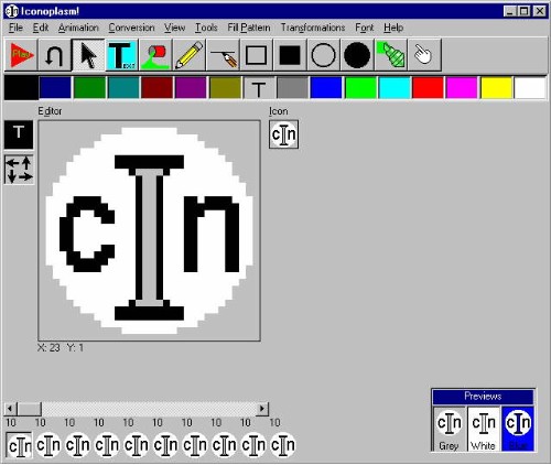 The little Iconoplasm app is here for you. It makes it easy to create fun icons and cursors.