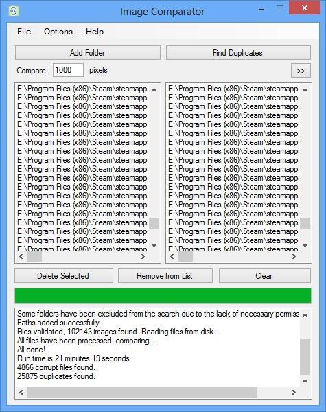 Image Comparator is a simple tool that finds duplicate image files on your system. Even if two images have different formats and file sizes (MB/KB) Image Comparator will find them. Supported file formats: JPG, BMP, PNG, GIF, TIF, ICO. NET Framework 4.0. It works only on Windows.