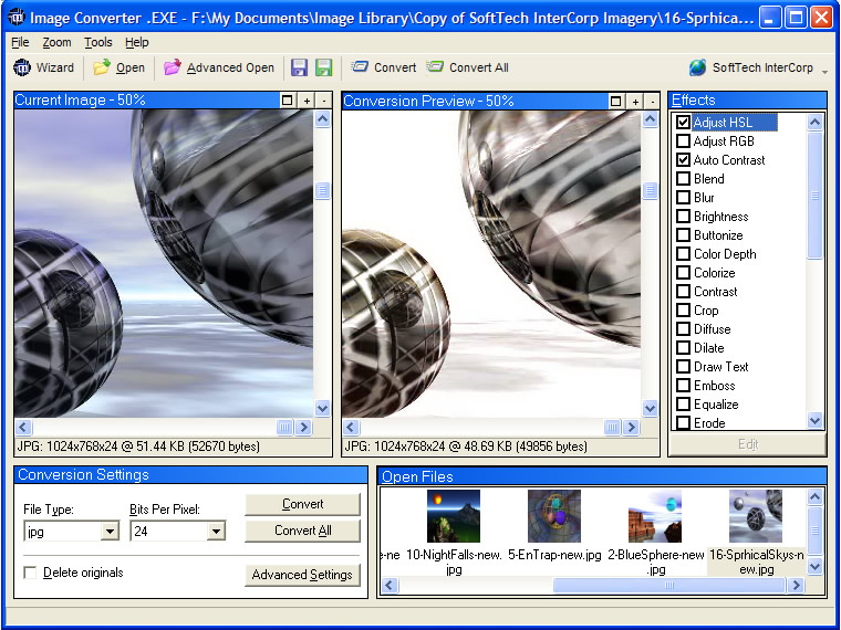 Image Converter .EXE is a fast and flexible conversion program, allowing you to convert more than 15 formats. It has up to 20 effects that can be used in the conversion, even in bulk mode.