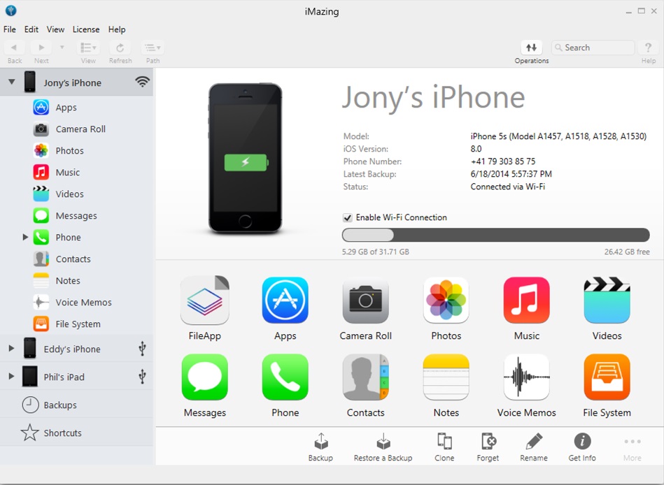 iMazing is a program that helps you transfer files between your iPhone or iPod Touch and your computer. It will allow you to manipulate folders, copy, delete and transfer from or to your computer or device.