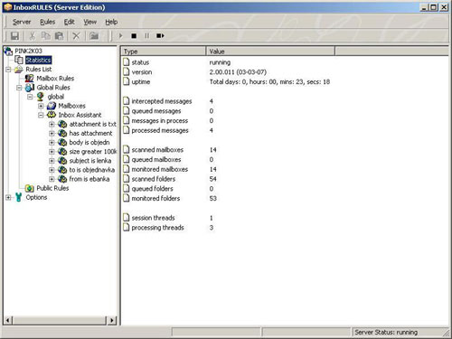 InboxRULES is a program that automatically saves email messages or attachments to disk as soon as they arrive in your mailbox. It is not a standalone program, but once installed it becomes part of MS Outlook or MS Exchange Server.