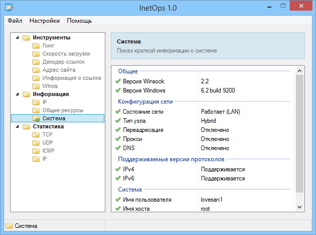 InetOps allows you to perform network operations such as ping, measure download speed, decode, display website IP addresses, display URL information (size, date changed, etc.), display IP address (including external address), display WHOIS domain information, display shared resources, network traffic information window, display IP, TCP, UDP, ICMP statistics. Full IPv6 support.