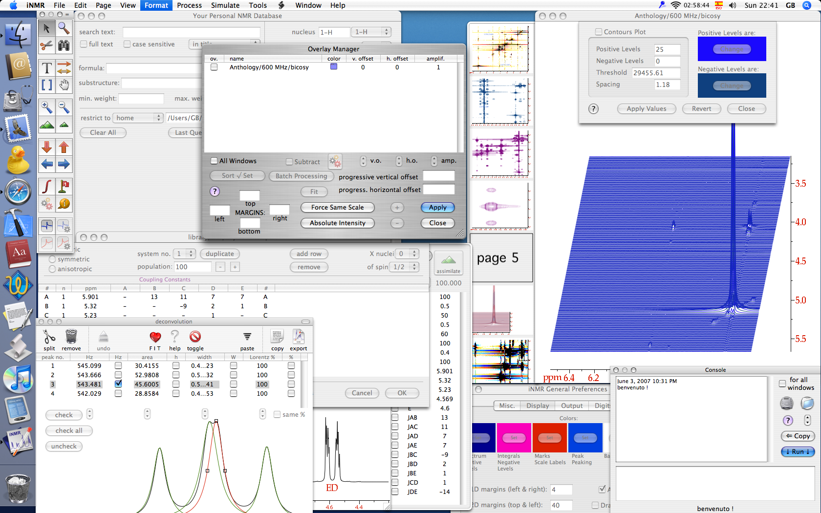 iNMR is a special application through which you can simulate spectrum calculations and export projects to one of several formats - JCAMP-DX or Sparky. Included are analysis tools specialized for simulating complex calculations. The application can read data from many professional standards, including JCAMP-DX, Bruker, GE or CARA-Xeasy. One of the other important features is the bulk processing capability.