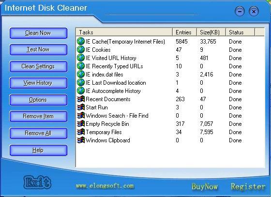 Internet Disk Cleaner is a tool for cleaning your browser cache, deleting unprotected cookies, protecting URL and index.data files and more. Internet Disk Cleaner supports IE, Firefox, Netscap and Opera. You can schedule and automate cleanups in advance.
