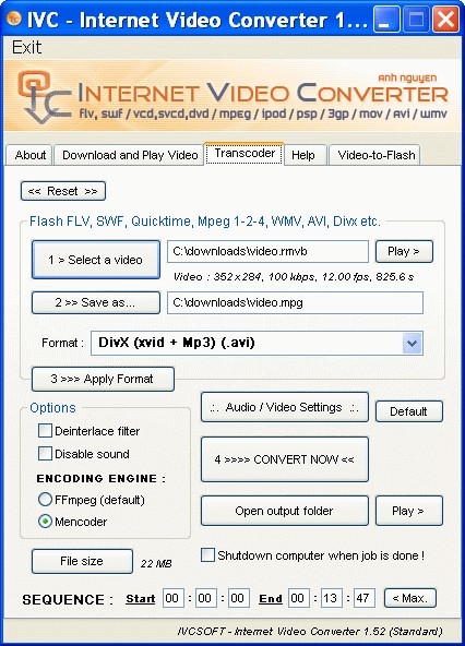 INTERNET VIDEO CONVERTER is a quality application for converting various multimedia files (videos, images,...).