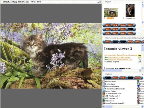 Inzomia Viewer is a professional viewer of your images and digital photos. It supports viewing JPG, PNG, BMP, TGA, TIFF and images in compressed zip file. It offers the creation of playlists and slideshow presentations.