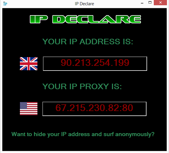 IP Declare is a simple and small application that tells you how to find out your own IP address and all the proxy IPs you use. You just need to log in to any website and fill in a CAPTCHA or prove you are human.