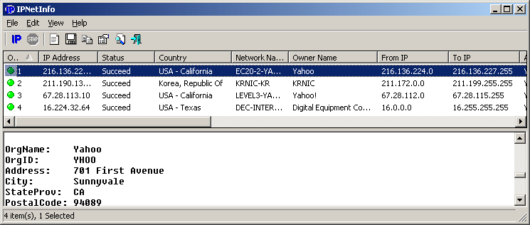 IPNetInfo is a small utility that easily looks up all available IP address information: IP address owner, country/state, IP address range, contact information (address, phone, fax and email), and more. This utility can be very useful for finding the origin of spam. You can simply copy the message header from your email software and paste it into the IPNetInfo utility. IPNetInfo automatically extracts all IP addresses from the message header, and displays information about those IP addresses.
