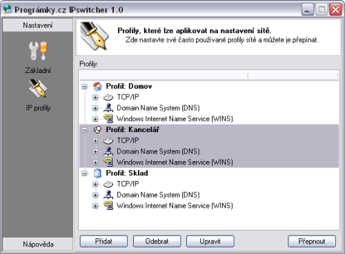 IPswitcher allows you to easily switch TCP/IP settings on your laptop. So you don't have to find a network administrator every time. From now on, you just click the mouse. You set up profiles once for the networks you connect to frequently and you're done. Then you can easily set up your network with one click, without reboots, complicated check boxes or filling in items you don't understand.