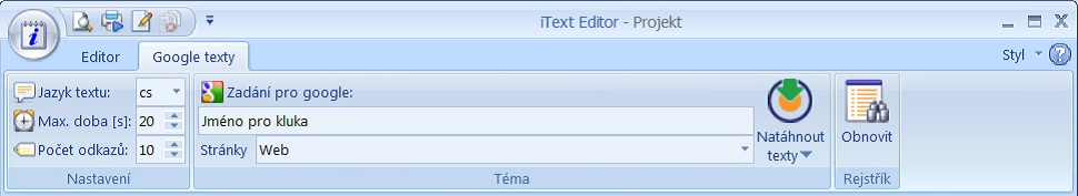 The program allows you to create a quick summary of information on a given topic. The editor pulls in text from links specified by Google according to keywords. From the resulting texts, a single text can be easily edited and this information can be used for decision-making, inspiration or as the basis for a report or essay.