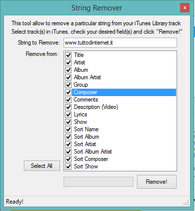 iTunes Lyrics Grabber is a tool that allows you to automatically add missing lyrics to songs stored in your selected iTunes music library. It includes several tools that, for example, determine the number of plays for each song, or can remove lyrics from a song title, album, artist, etc.