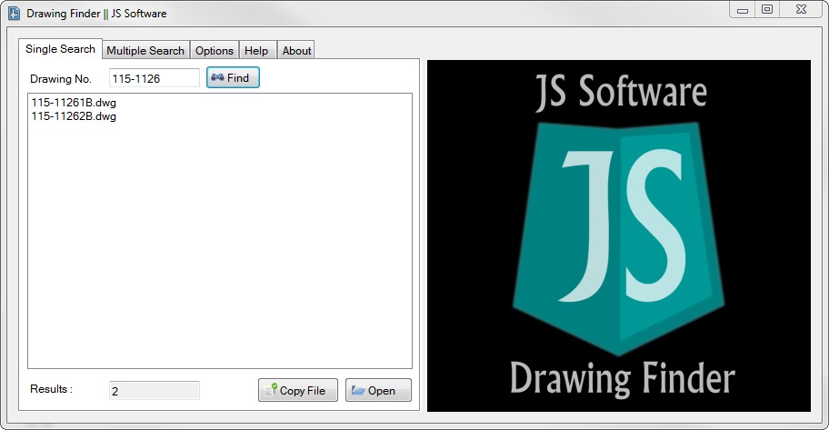 With JS Drawing Finder Viewer you will be able to search, open and copy files quickly and easily. It supports DWG, DXF and PDF formats and includes an integrated viewer. You can also copy to the system clipboard.