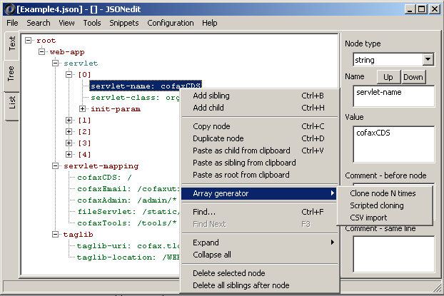 JSONedit is an application designed to create, modify, parse and validate JSON scripts. It also allows you to call back JSON source code from a specified URL. It searches for code fragments. JSON files can be loaded, data from a CSV document can be imported. C++ class generation or code reformatting is a bonus.