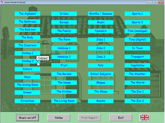Junior World of Words is a handy app for those who want to learn English words and sentences exclusively through pictures. It contains 45 topics with pictures, each with its own built-in testing. All picture windows have three activities: words, sentences and a quiz.