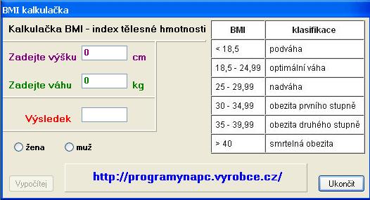 BMI (Body Mass Index) is an index used to classify underweight, overweight or various degrees of obesity. The formula for calculating BMI is very simple: BMI = body weight(kg) / body height2 (m).