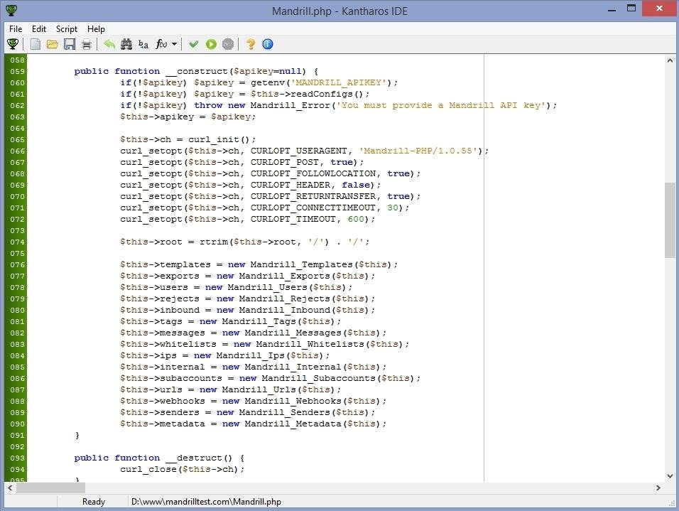 Kantharos IDE is a development environment designed to create web applications in PHP. It includes a built-in debugger, a syntax checker, a function writing assistant, a tool for navigating between classes and functions, and above all a simple and clear user interface.