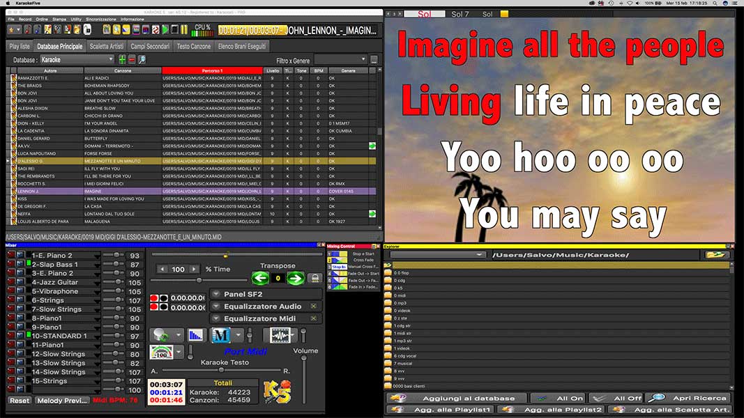 In the professional or home version, Karaoke 5 is an excellent text synchronizer used to create Midi, MP3, K5 and MP4 files, and an excellent management tool with Double Screen "TV" (only in the PRO version), mixing tracks using Mix Control, K5 virtual instruments, quick database search, quick and easy search of karaoke music bases on the Internet, artist lineup window... for use during a performance or show.
