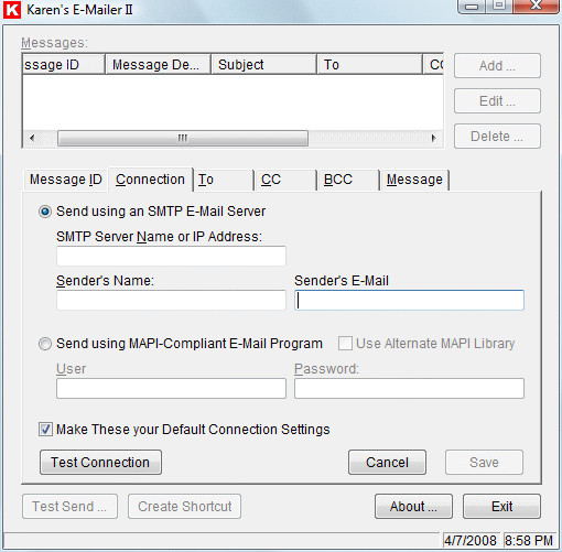 Karen's E-Mailer II is a program that lets you do just that. It is a powerful and easy-to-use tool that will help you with your e-mail needs.