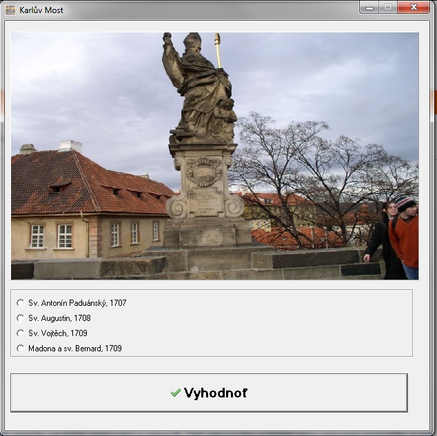 Karl's Bridge is a simple program that will test your knowledge about the statues located on Charles Bridge.