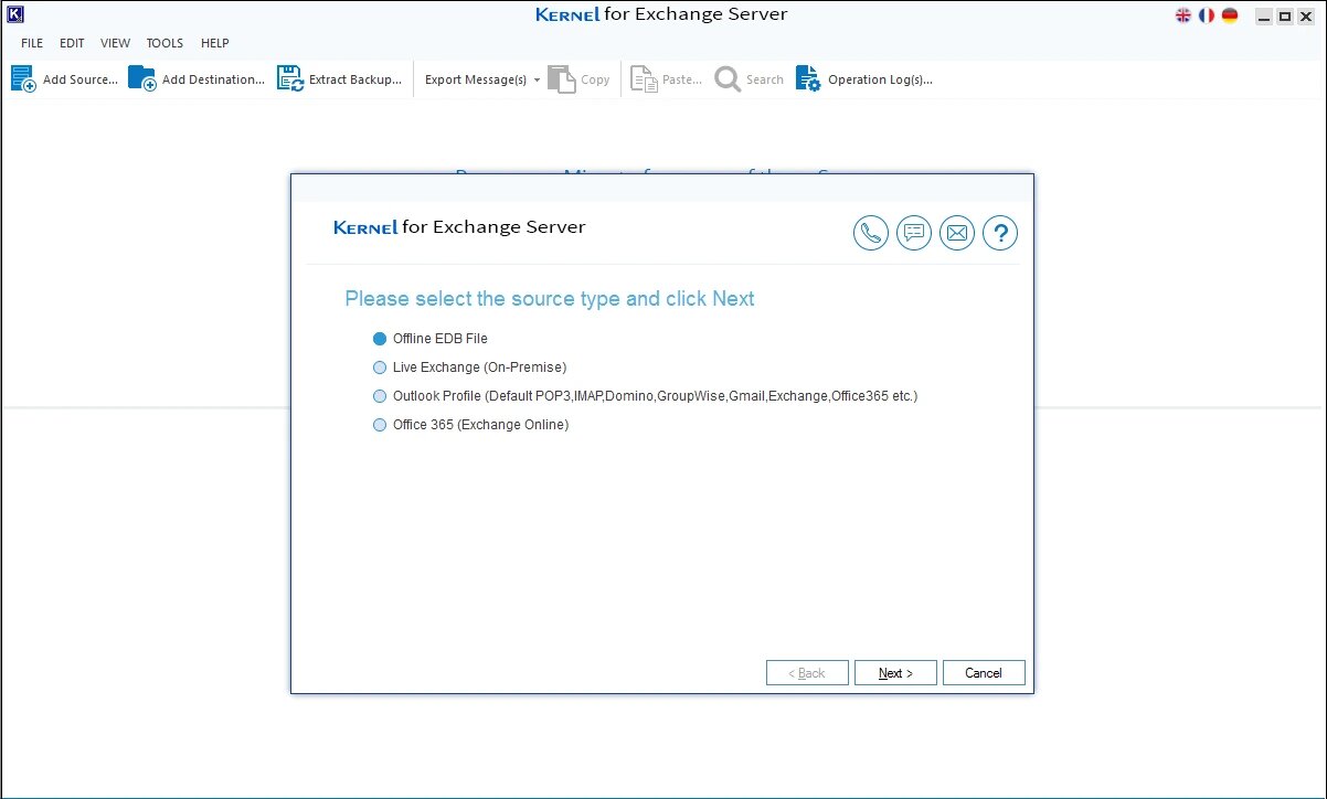Kernel for EDB to PST Converter recovers mailboxes from corrupted Exchange database files and then saves these items to new or existing PST files, Live Exchange Server, Outlook or Office 365. The tool also recovers deleted items from badly corrupted EDB files.