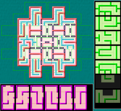 A logic game by Everett Kaser from 2005. Your task will be to find paths and walls in the maze according to the given clues - you build them from overlapping pieces of PATH and WALL. This game is a bit different from the other games by this author, it has something in common with the "pucle" picture puzzles popular in the Czech Republic, but thanks to the computer it allows much more, for example overlapping two layers - paths and walls.