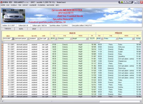 The program offers three modes of creating the logbook.1st mode is fully in the direction of the customer, 2nd mode 50% DEMO creates the logbook with the help of PC and 3rd mode 100% DEMO is fully in the direction of PC, you only need to enter the planned number of kilometers, area of movement and period, the program will automatically generate rides that can be manually edited. The program also offers the display of individual routes on a map of the Czech Republic. The final output of the program is a printout of the complete logbook. At the same time, it is possible to export to a CSV file and then use the data in MS EXCEL.
