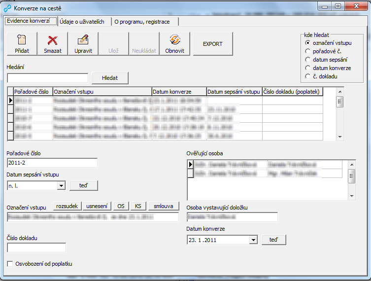 The compulsory recorded data include: the serial number under which the conversion is recorded in the register of conversions carried out the date of the conversion, the specific designation of the entry and the date of its preparation, if the date is included in the entry, information on the payment of the administrative fee or notary's fee (indication of the number of the document by which it was paid) or information on the exemption from the administrative fee with reference to the legal regulation A monthly extract from the register is a piece of cake.