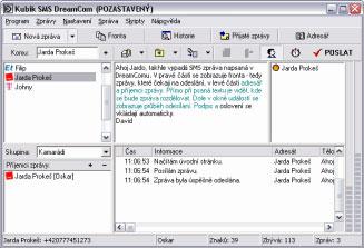 Kubík SMS DreamCom is a program for sending SMS messages from the Internet for free or via a connected mobile phone.