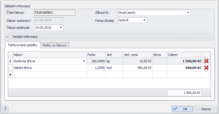 Kufřík is a program designed to print and record invoices for self-employed persons. More precisely for non-payers of VAT. In Kufřík it is possible to record customers, display statistics and keep records of payments for invoices. Now it allows to print documents for reports for ČSSZ and ZP.