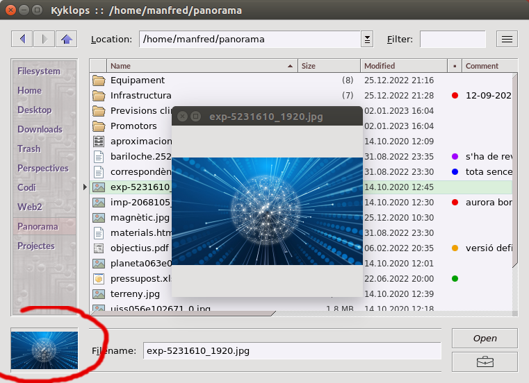 Kyklops makes it easy to transparently associate file types with your favorite programs, create arbitrary links in the navigation bar to reach your destinations with a single click. It can remember which files you opened during a session and reopen them automatically, and last but not least, it offers a clear and simple interface that opens the way to freely browse the entire file system.