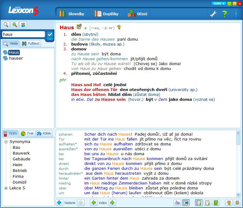 The latest version of the excellent Lingea Lexicon 5 electronic dictionary brings updated data in a completely new application. The dictionary faithfully reflects today's language, containing new words belonging to the general vocabulary and specialist terminology. This original dictionary, although medium in size, is more like a larger dictionary in content. Maximum emphasis has been placed on ensuring that the terminology contained in it is truly up-to-date; this has been achieved, among other things, by extensive use of Internet sources and the specialist foreign press.