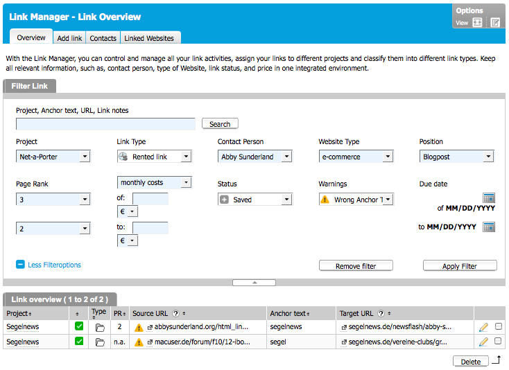 Product details of Link Manager | |